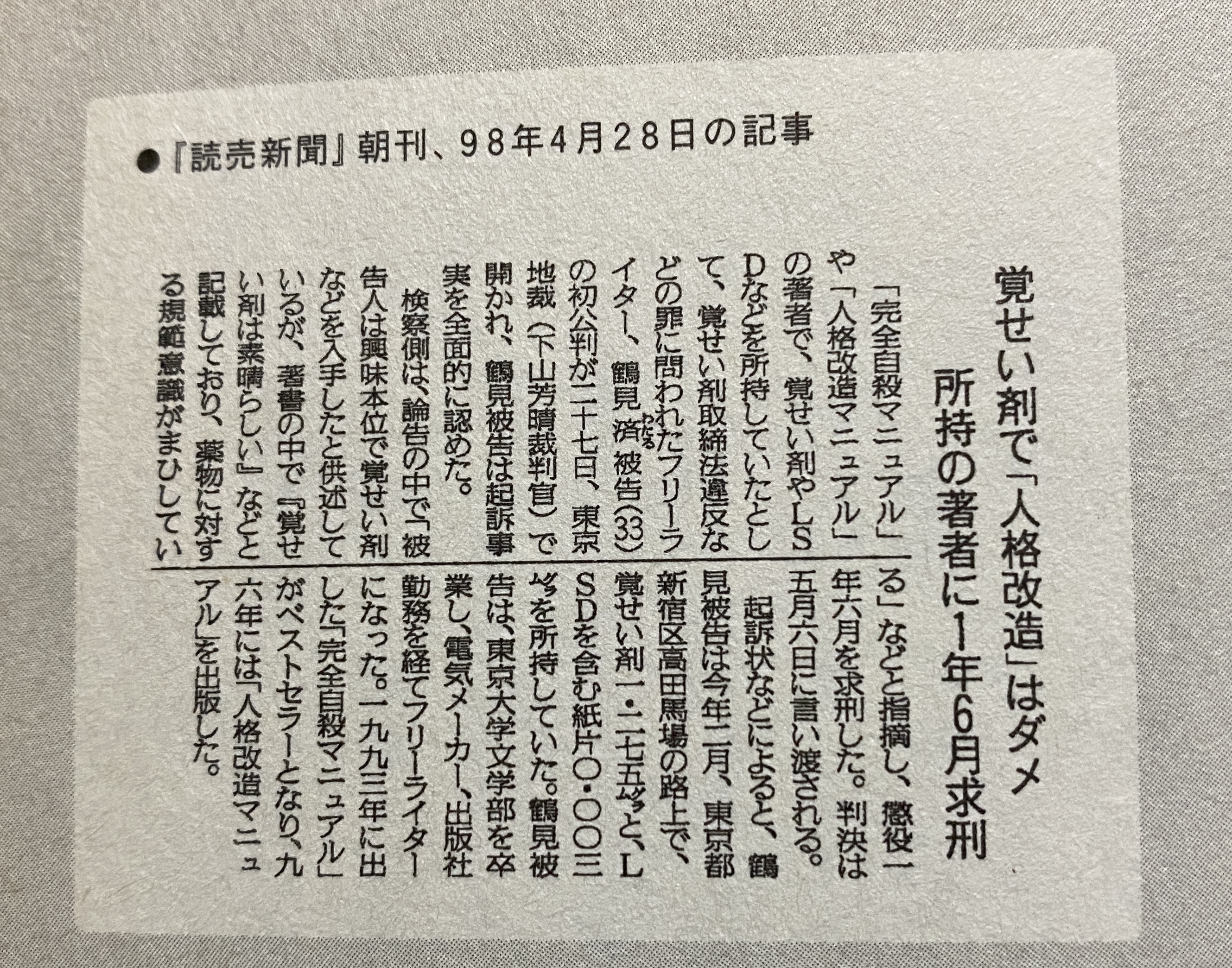 実は鶴見済さんは、覚醒剤取締法違反の罪で逮捕されています。